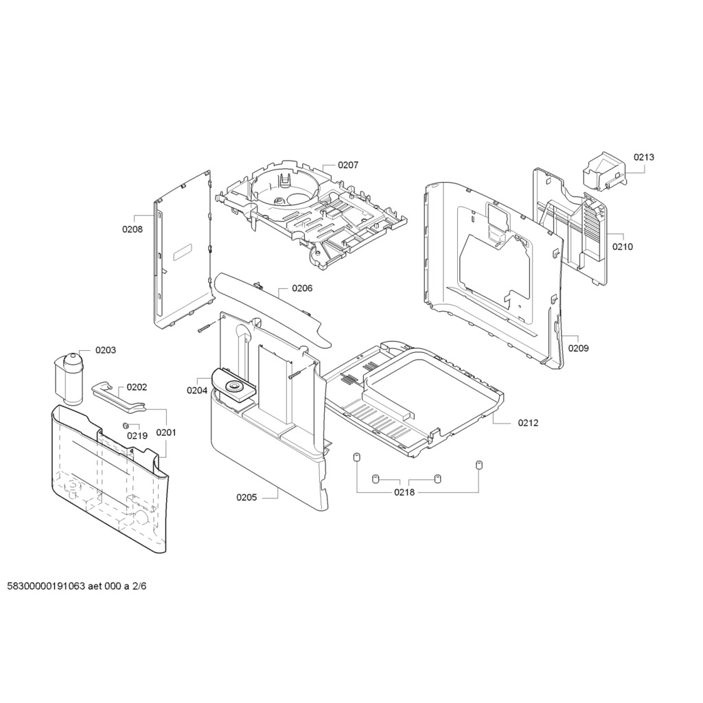Zadní část pouzdra - 00708309 - p.0208, Náhradní díly Kávovar Bosch TES60729RW04, E-NR: TES60729RW/04