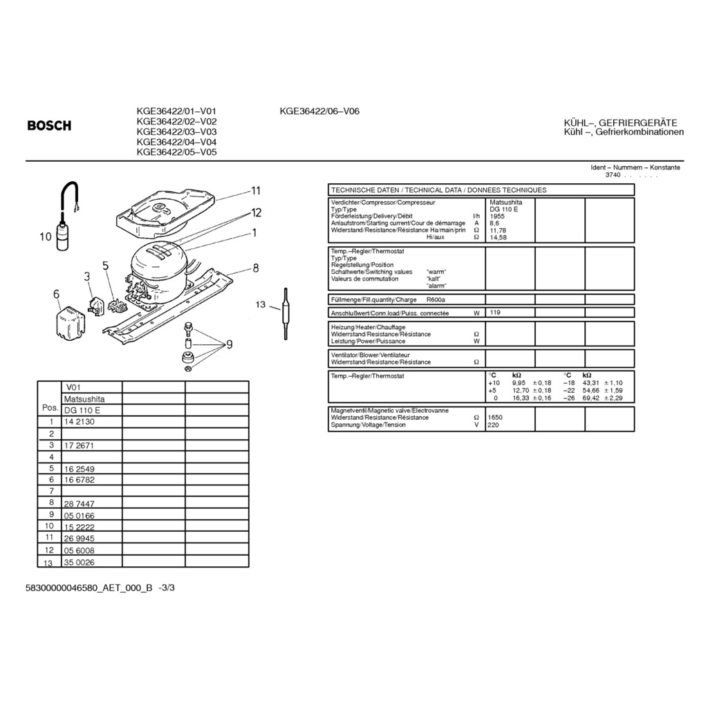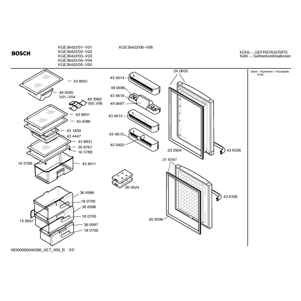 Víko - 00151902 - p.0023, Náhradní díly Lednice Bosch KGE3642201, E-NR: KGE36422/01