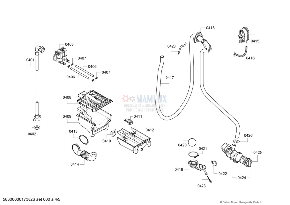 Přívodní hadice - 12013467 - p.0401, Náhradní díly Pračka Bosch WAK16200TR01, E-NR: WAK16200TR/01