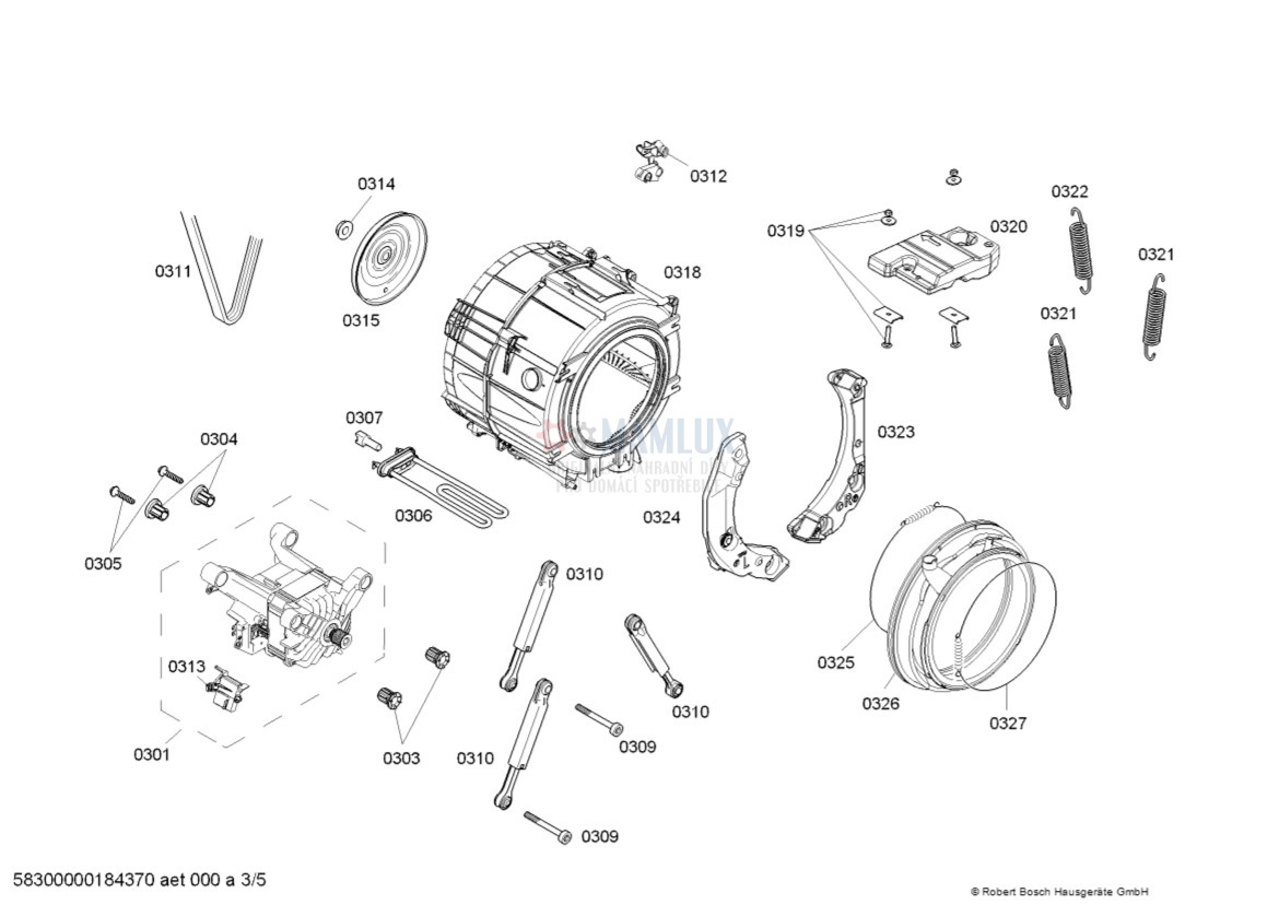 Zadní stěna - 00771904 - p.0202, Náhradní díly Pračka Bosch ...