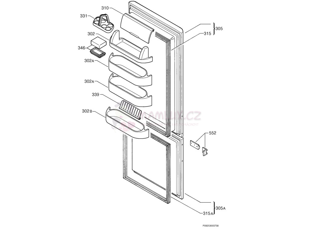 Dveře mrazáku - c.305A Náhradní díl Lednička Electrolux ER ...