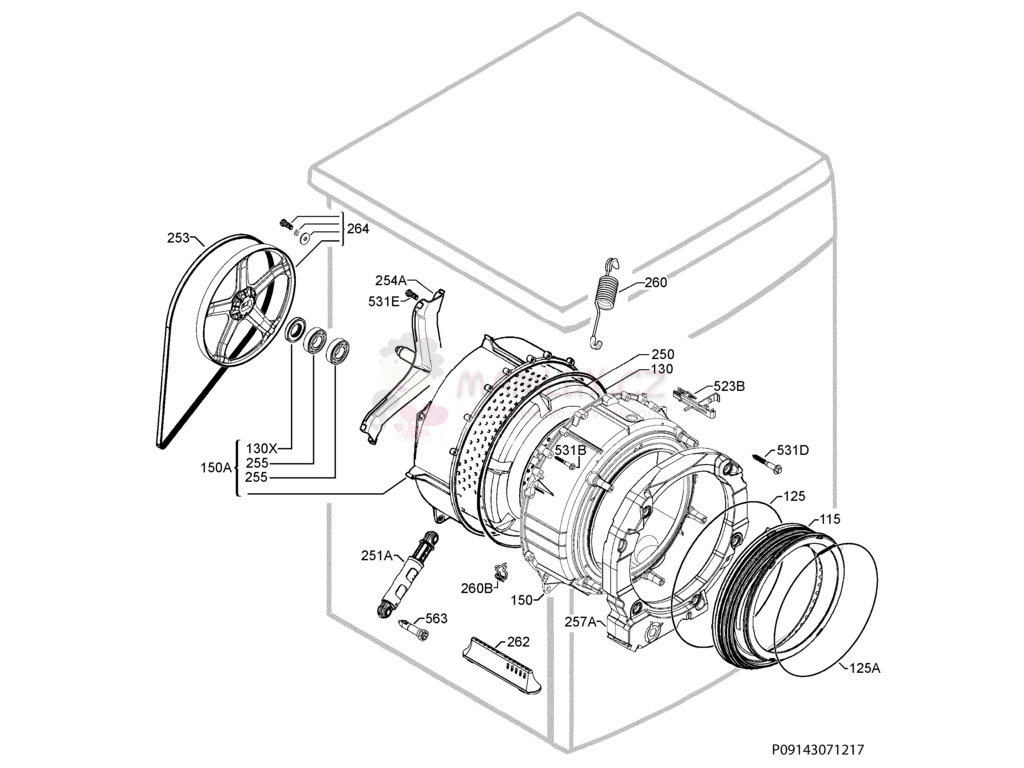Vana zadní část - 1322959303 - p.150A, Náhradní díly Pračka Electrolux EWF 126410W, 20120410, PNC: 914904551