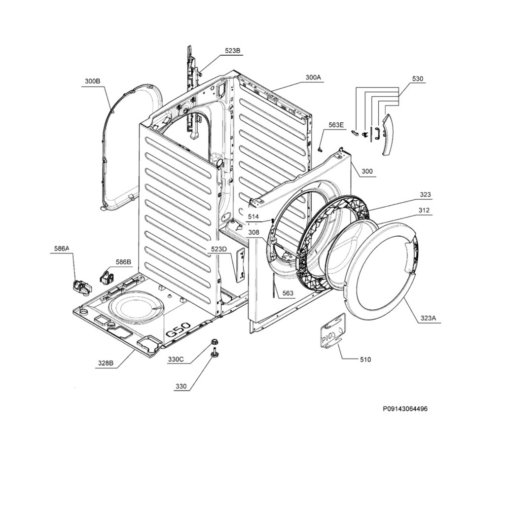 Zadní panel pračky - 1327638100 - p.300B, Náhradní díly ...
