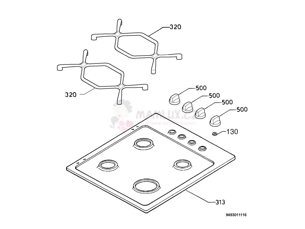 Podpěra sada - 50280807004 - p.999, Náhradní díly Sporák Electrolux EHG 686X, 20060113, PNC: 949620067