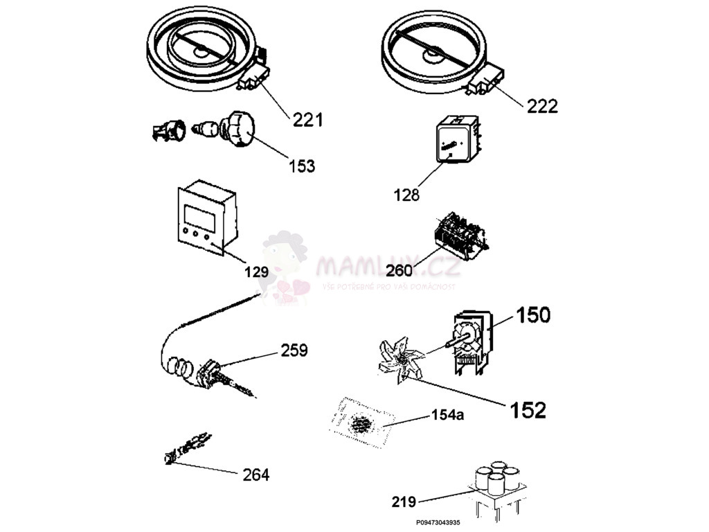 Topné těleso 1800W/230V - 3740636216 - p.221, Náhradní díly Sporák Electrolux EKC 513507W, 20080606, PNC: 943265820